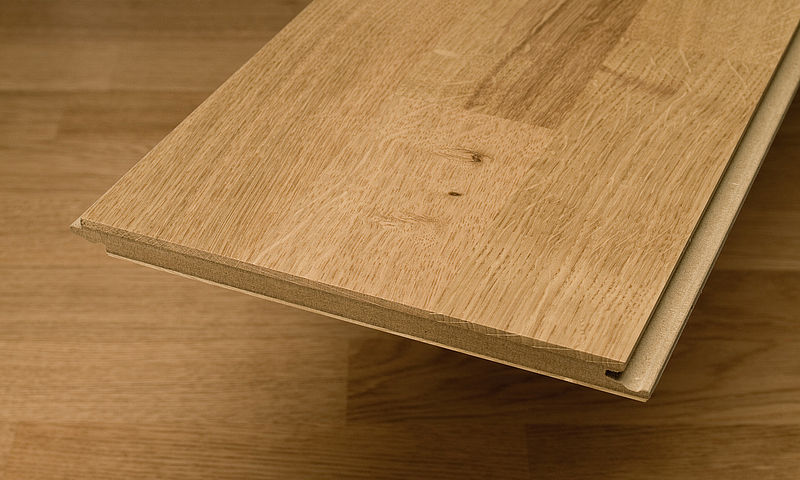 Vrchní nášlapnou vrstvu pak tvoří 3 - 4 mm tvrdého ušlechtilého dřeva s lakovanou nebo olejovanou povrchovou úpravou. Cenově dražší typy mívají podklad z pásů masivního dřeva lepených napříč směru vrchní vrstvy. Spodní strana bývá zpevněná silnější dýhou - takzvaným "protitahem"